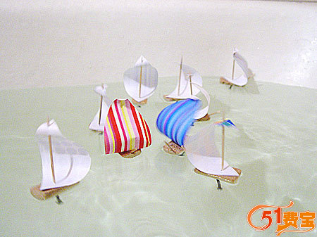 4、最后,这艘简单的废物利用做成的小帆船就能下水航行啦。