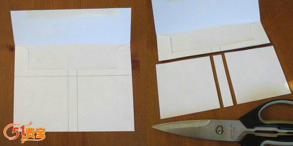 2、按照以下画线方法,在在信封底下取两片正方形。