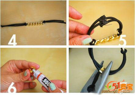 改造头绳做手链所需材料:头绳、包链、金属扣、针线、胶