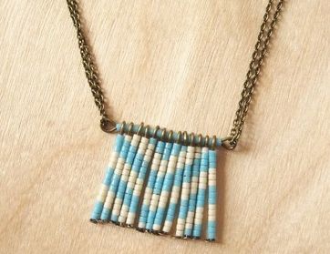 7、用链子挂起来,就是一个特别的项链吊坠,更有趣的是,两种颜色的管珠还能拼出有趣的图案。