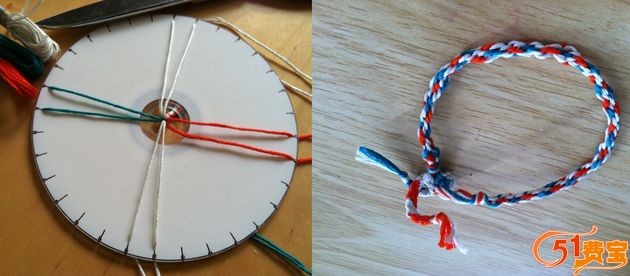 3、接着就可以使用这张DIY的kumihimo盘进行手工编织。