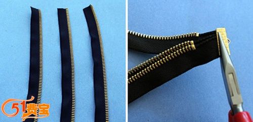 这个DIY理所当然地利用到了旧拉链,另外还需要准备链扣和尖嘴钳。