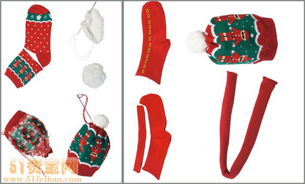 所需材料:白色和红色的袜子各一双,棉花,针线。以下就是如何把两对旧袜子通过DIY做成可爱的圣诞节小雪人的做法和制作步骤: