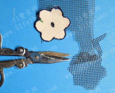 2、利用相同的花朵纸型,裁剪丝网花,也需要四片。