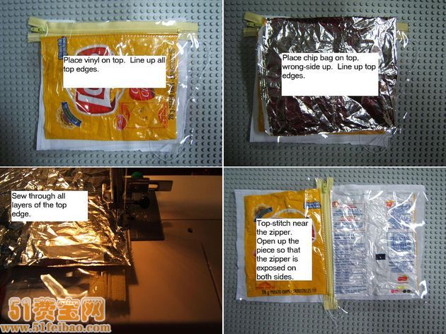 利用包括零食在内的各种食品包装袋diy环保笔袋的做法步骤,原图片当中已经有文字介绍,恕不另行翻译了。