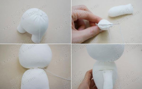 2、利用旧袜子diy手缝小白兔布偶制作步骤: