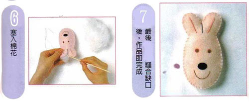 第三步:沿着画线裁下不织布,剪裁时须沿着铅笔线的内缘剪,不要让笔迹留在不织布上,部份有眼睛及鼻子的纸型的作品,到此阶段的制作要点及步骤是相同的。