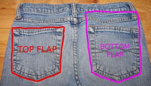 2、根据图片所示我们从旧牛仔裤上剪下两个口袋。
