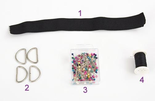 所需材料:扣环、织带(可以从旧包上剪下)、颈巾、珠针、针线