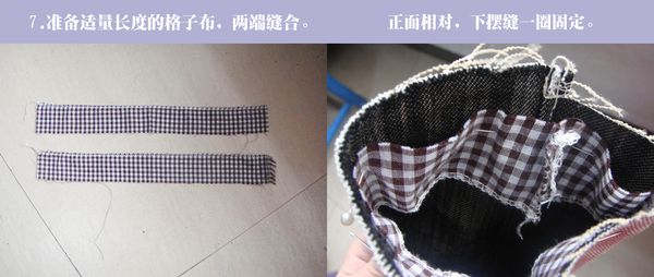 9、用螺纹包住松紧带,然后将它们上到裤腰上,压好明线,一条裤子就完工了。