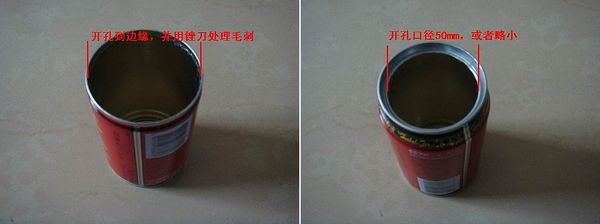 1、将王老吉罐的上下剪开,下面口全部剪掉,上面口剪出直径50mm,如下图