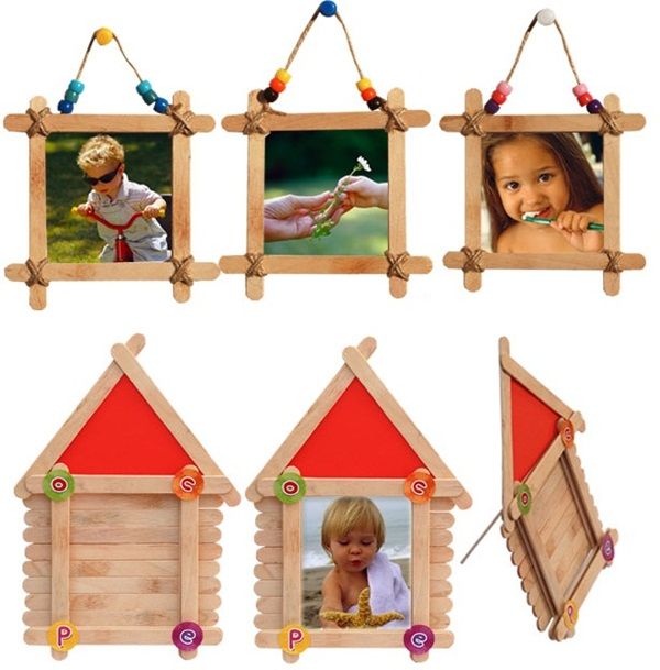 1、制作家庭相框。可以直接用热熔胶把雪糕棍粘结成各种形状的可爱相架、相框,再配上一些简单的小装饰,就是一个非常可爱的小玩意了。