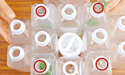 2、基座四边各再加黏二个宝特瓶,注意要靠紧,且瓶口位置稍微与基座的宝特瓶错开。