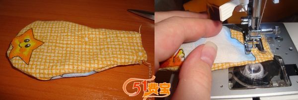 7、在圆布夹层塞入填充棉花,缝合封口。