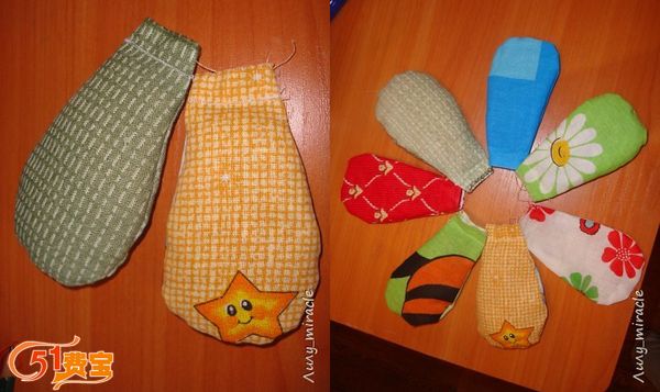 4、把花瓣翻回正面,填入棉花或者夏天适用的提升药材,封口。