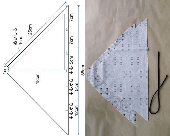 1、根据图纸中的标注,剪下两块三角形的棉布。