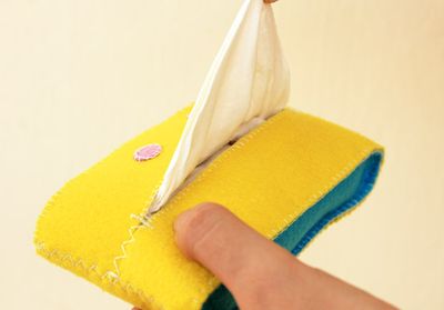 9、把纸巾叠好以后,整齐地放入到我们做好的瓦楞纸个性奶牛纸巾盒里,就可以把它摆在方便够着使用的地方了。