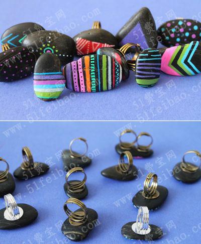 难以置信从河边捡回来的其貌不扬卵石,经过彩绘和简单的粘胶,居然可以制作出这么漂亮的创意手工戒指。从大自然里采集的纯天然材料,再利用五颜六色的颜料在上面绘画出自己的独特图案,这枚DIY戒指看上是独一无二的,而且也很可爱,亲手制作一款戒指送给女友或者朋友,是不是一件很浪漫的事呢?