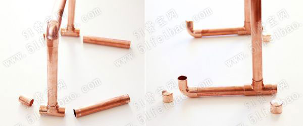 1、自己加工,或者委托五金店切割加工的铜管散件,包括直通管和弯头。