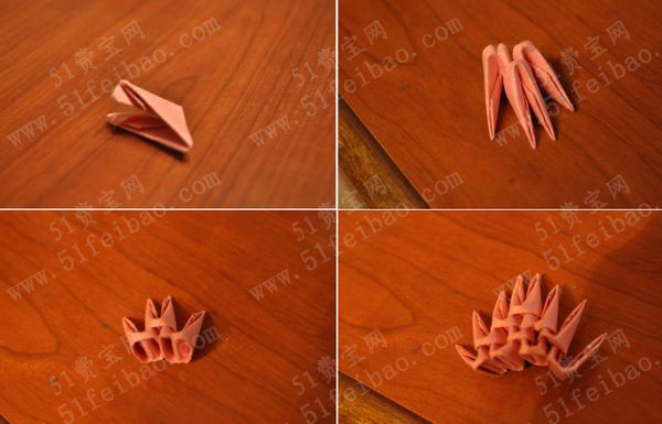 2、按照三角插基本做法,把所有纸片折起来成为三角插单元,并开始按照diy小猪的要求数量互相插入。